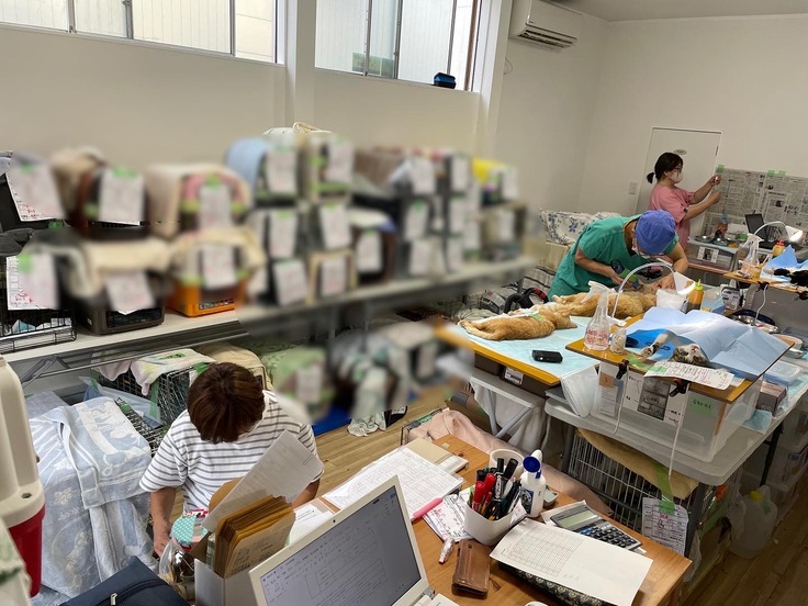 手術に使用している部屋はこれだけの頭数になるとスタッフのすれ違いもスムーズにいかなくなるほど猫であふれます。シェルター移設後は、手術の機能を新シェルターの広いお部屋に移動する予定です。