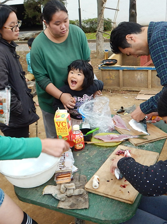 見ていて捌きたくなった子が、一緒に捌いていました。