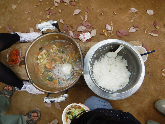 ごはんのおかずに、野菜や肉を持ち寄って、鍋もつくりました。