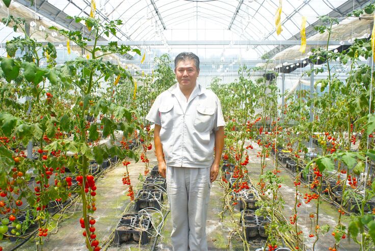 はじめまして。東京都あきる野市で「プチぷよ」というミニトマトの栽培・販売をしている、Mファーム代表の宮下豊彦です。私は網膜色素変性症という進行性の視野障害をもちながら、ビニールハウスでのトマト栽培をしています。