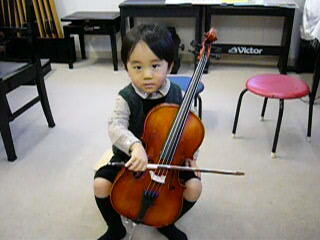 栞路君がチェロを習い始めた頃の写真と動画(2005年1月&2