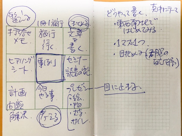 みなさまの前で何を話そうか、用意するものは何か、などの準備は、もちろん『M9ノート(マンダラ)』を使います。