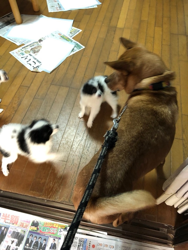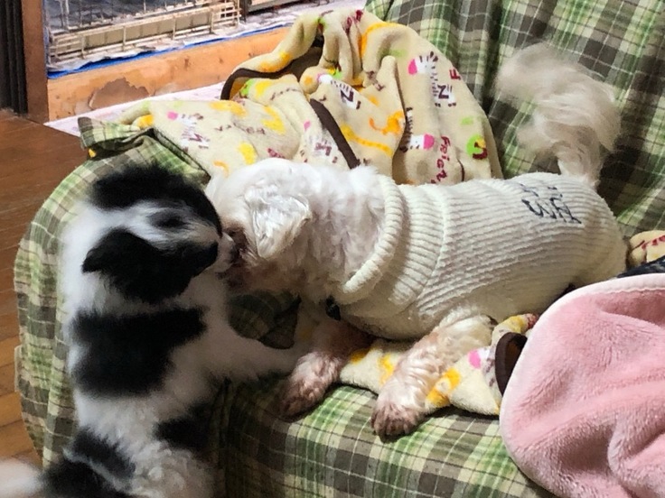 先住犬と会うとまる子は自分から寄っていきます。