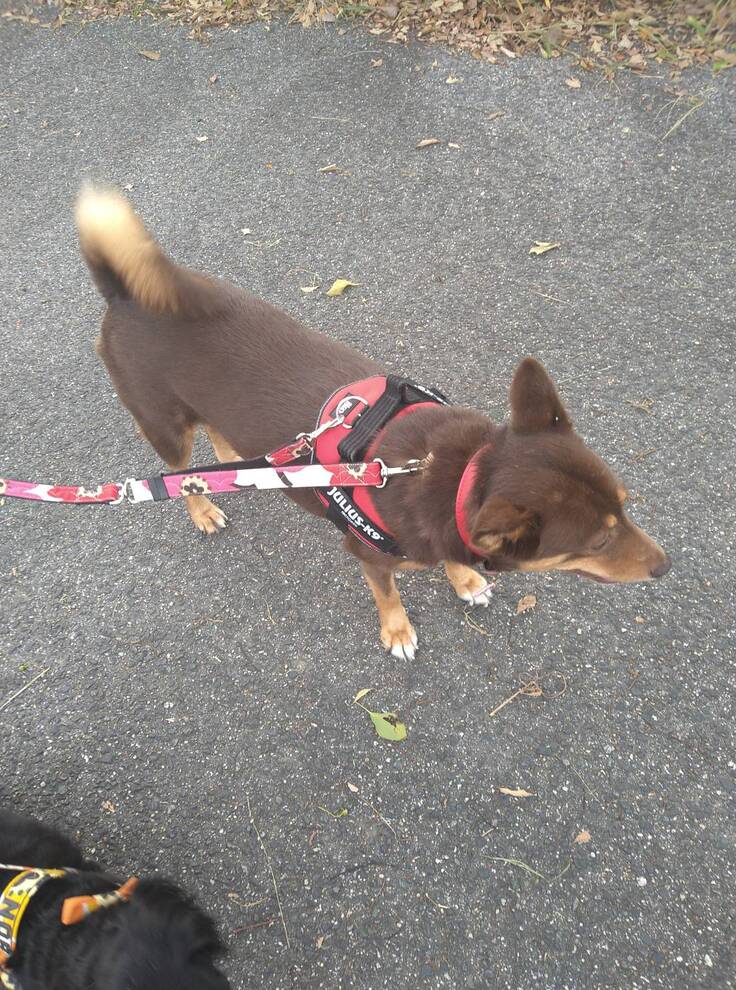 散歩も時間かかり、2人に相談し、まぁくんハウスに来てくださったトレーナーさんのアドバイスを受けて1週間練習し、先住犬の2匹とお散歩出来るようになりました