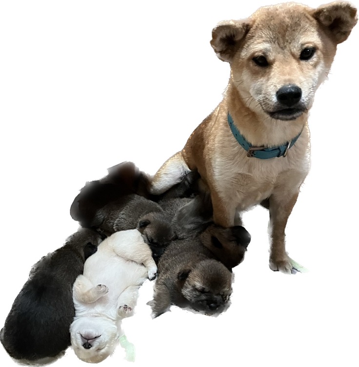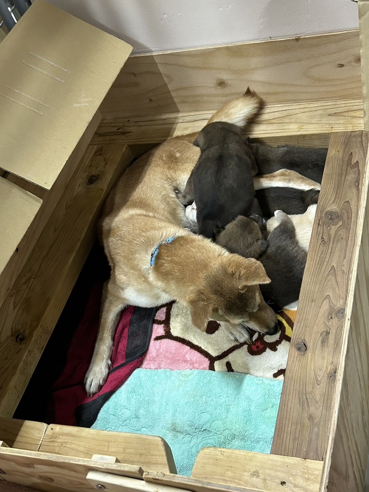 1月17日に出産して5匹の可愛い❤天使を生んだ糸ママは子犬を含めとっても元気です