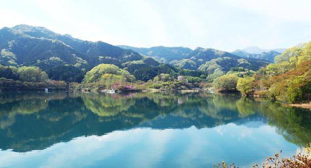 桜や紫陽花など四季折々の花が咲き、野鳥のさえずりが響き渡る静かな湖。