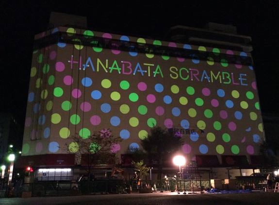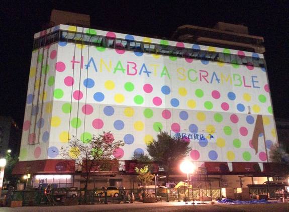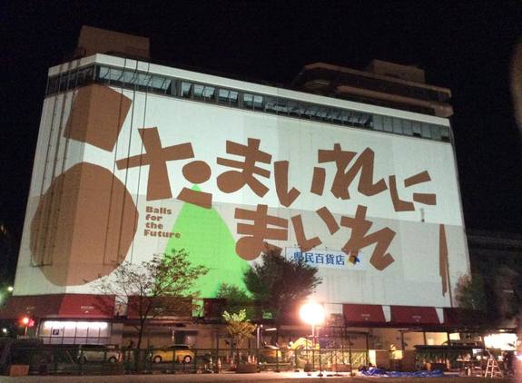 玉入れに入ったボールはセンサーで計測され、それが映像として、建物の壁にプロジェクションマッピングされていきます!