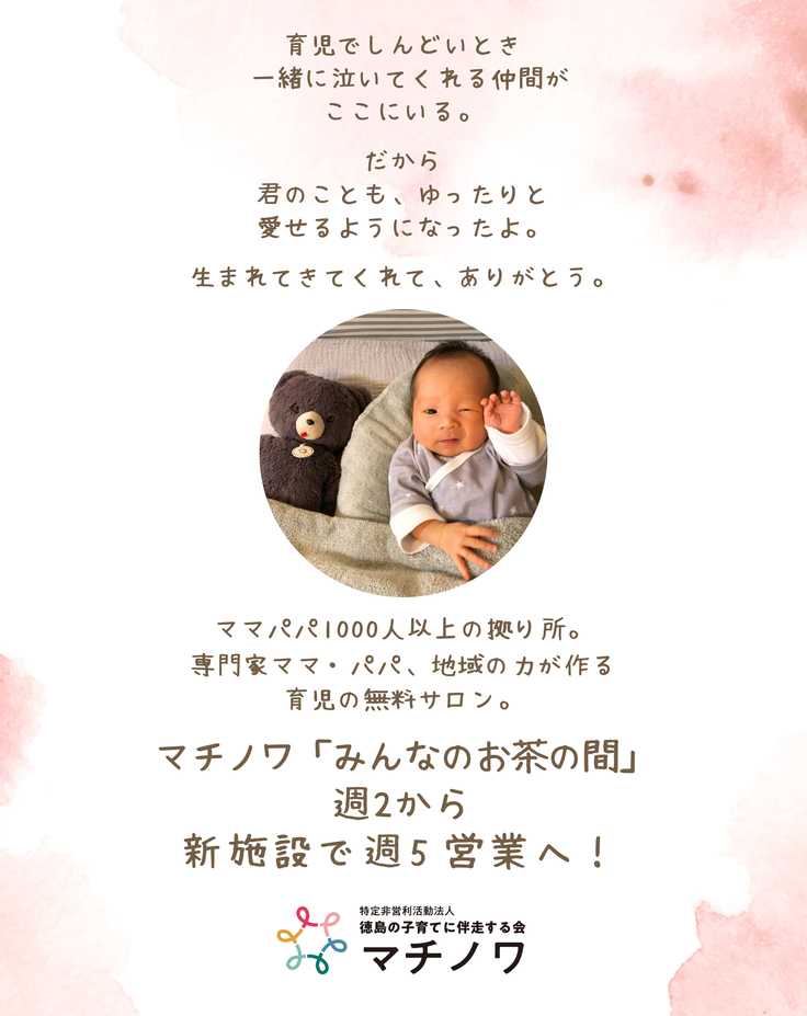 わたしたちは、NPO法人「徳島の子育てに伴走する会マチノワ」と申します。