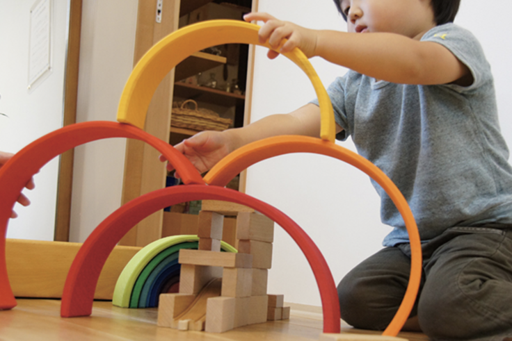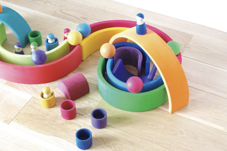 ドイツでシュタイナー教育に基づいた玩具を製造しているGrimm's Spiel Holz Design(グリムス社)の虹のトンネルシリーズ。