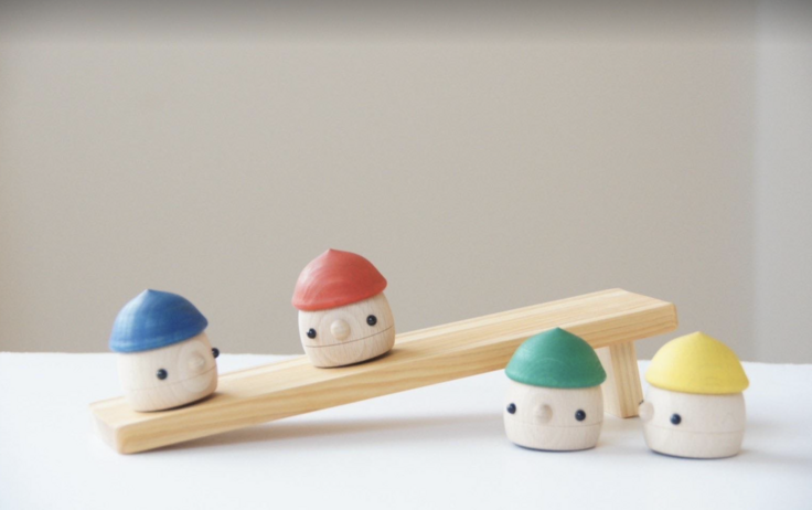●坂を降りる姿や音を楽しむ、木のおもちゃ「どんぐりころころ」
