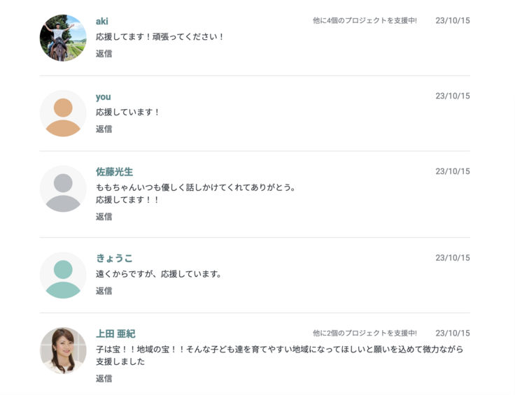 ●特別なリターンはありませんが、感謝のメールをお送りします。