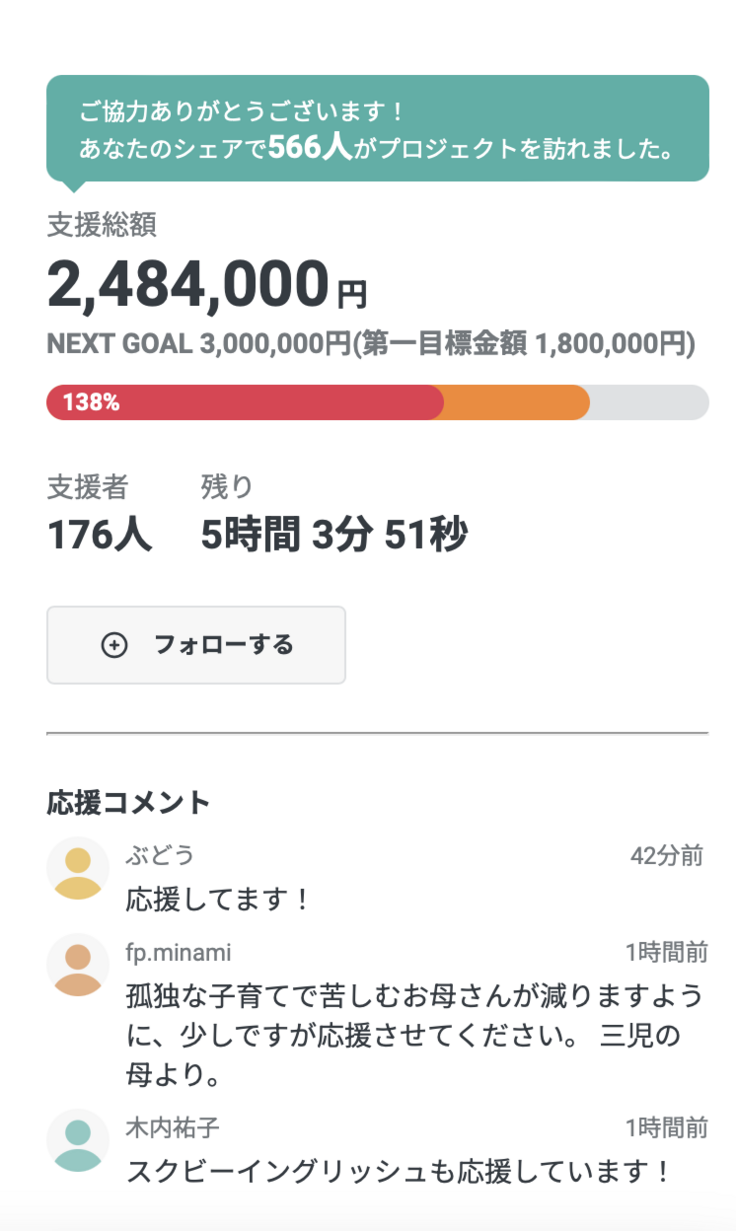 な・な・なんと18時の時点でご支援金額2,484,000円!