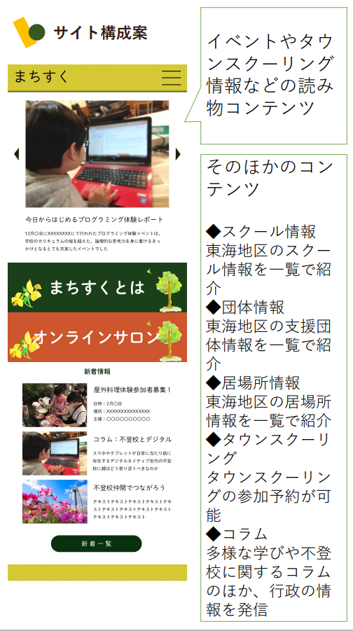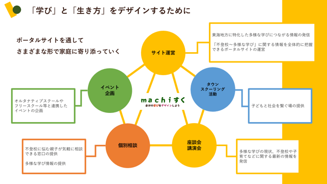 東海地方に特化したオルタナティブスクール・フリースクールといった既存の学校とは違う学びの場の情報を網羅したポータルサイト「machiすく」を制作、運営します!