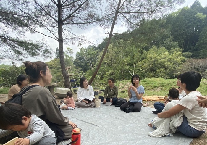 講演会後は、いつも子どもたちの保育ですごしているという農園へ移動して座談会。ここがもう、なんともなんとも気持ちのいい環境~😂じんわりリラックスできて、でも五感はしっかり刺激されてちょっと目が覚めるような、そんな素敵な場所でした。毎日ここで遊び尽くす子どもたちが羨ましい!