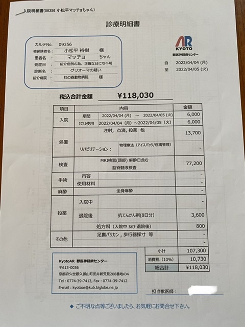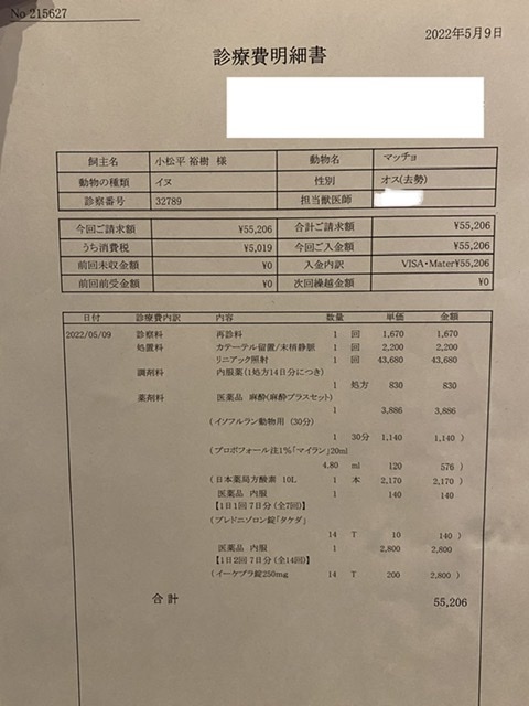 ・治療後の検査代、薬代(現時点では正確な金額は分かりません)