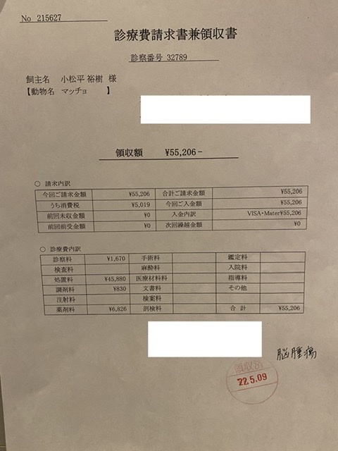 ※動物病院より掲載許諾を得ておりますが、担当獣医師名は伏せさせていただきます
