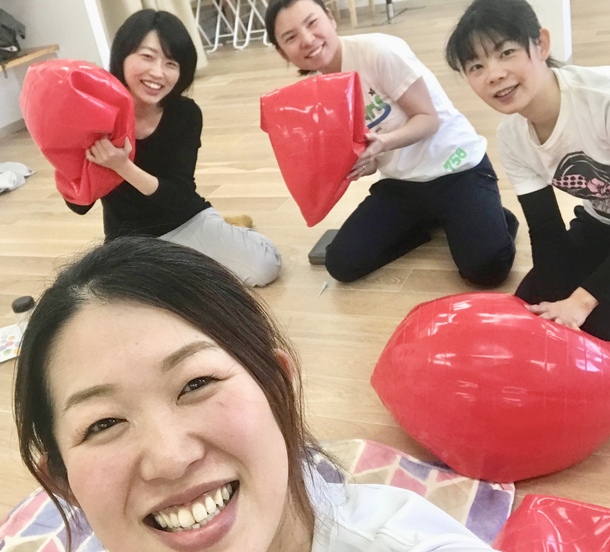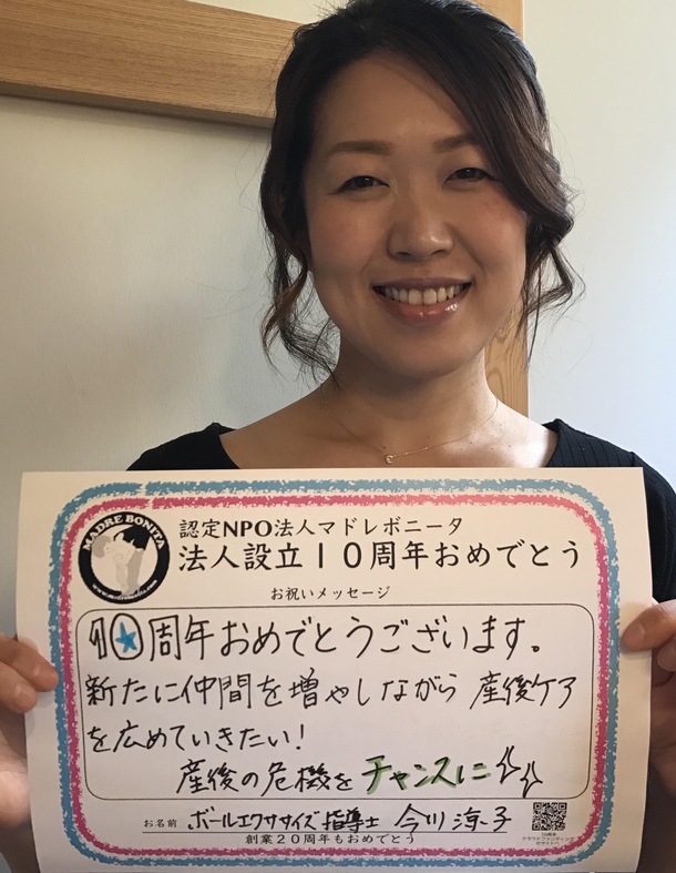 第1子の産後にマドレボニータの「産後ケア教室」に出会いました。最初の衝撃は今でも忘れられません。母になっても自分を語っていいんだ!と今思えばあたり前の事に目から鱗でした。その『安心して語れる場をつくる』ということは、ちょっとした心掛けでは到底できない、とても難しい事をしていると感じました。インストラクターの先生たちは身体スキルも人間性も考察力もホスピタリティも素晴らしく、「産後ケア」のプロとして誇りをもって教室を開催している姿に「私もやりたい!」とビビっときたのです。助産師という資格や今までの経験も活かせると考え養成コースにエントリーしました。去年、ボール指導士としてデビューし、今後は産後ケア教室を開催できる産後セルフケアインストラクターに挑戦していきたいと思っています。