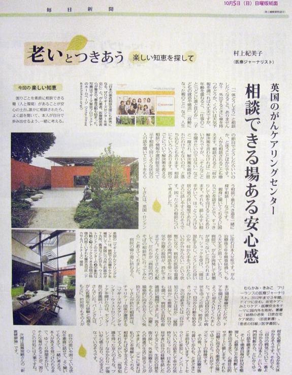 マギーズセンターとこのプロジェクトのことを大きく取り上げていただきました。