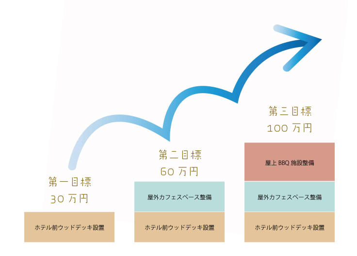 第一目標金額:30万円 ホステル前ウッドデッキ設置