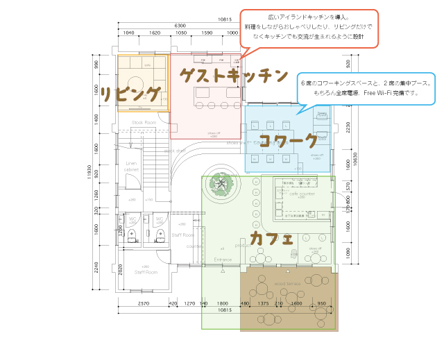 ↑屋外カフェはホステル前ウッドデッキの上に設置する予定です!