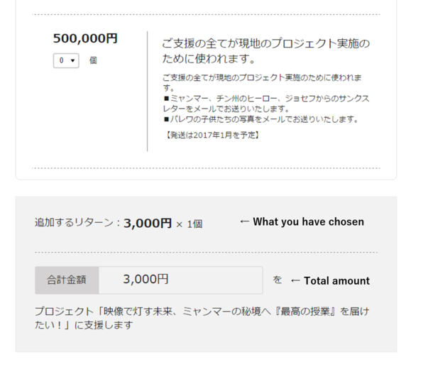特別なリターン品はありませんが、頂いた支援金をより多くプロジェクトに充てさせていただきます。
