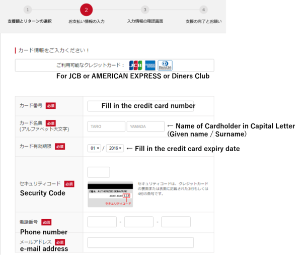 fill out the information of your credit card ; for JCB, AMERICAN EXPRESS, or Diners Club