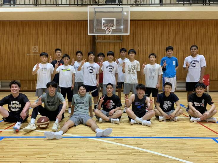 3月の日本一周旅出発前にご挨拶へ行った際、バスケ部顧問の大森先生から「コラボシャツでも作ろう。」とご提案頂き、バスケ部OBの方々向けに販売をさせて頂きました。