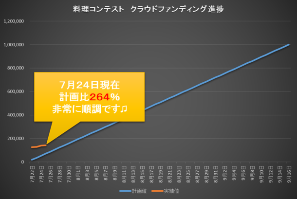 【進捗報告】 計画比264% 7月24日 残り54日