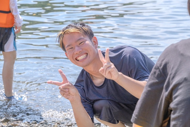 今回は、「永濱青空さん」です。町の方からは「あおっち」と呼ばれ、親しまれています。22年の夏に公営塾のインターン生として三瓶町を訪れたことをきっかけに、その後も三瓶町に通ってくれています。まきばの塗装や本棚づくりも手伝ってくれました。