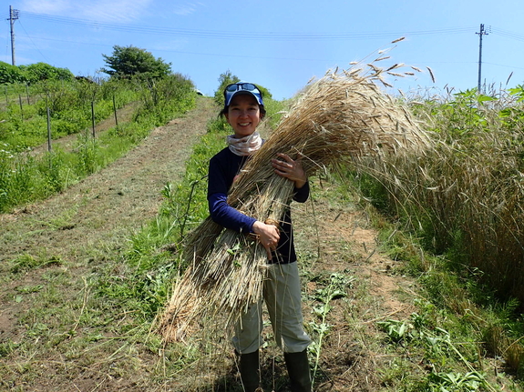 <7月下旬、ようやく収穫を迎えたライ麦。小麦と違って背丈が高いのが特徴です。ライ麦パンの需要が増えれば、いずれ寒冷地の遊休農地解消につながるのでは…という夢を持っています。>
