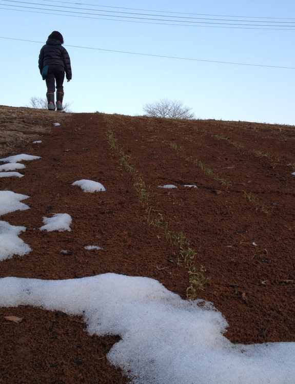 <標高1000m、冬の2m近い積雪にも負けずに春を迎えたライ麦。種を蒔いてすぐ雪が降ってしまったので半ばあきらめていましたが、4月の雪どけとともに芽を出してくれました。>