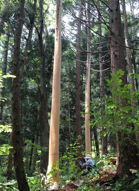 今回改修用の材を購入させていただくのは、静岡県富士宮市で皮むき間伐『きらめ樹』の活動をされているNPO法人森の蘇りの『きらめ樹工房』さんです。