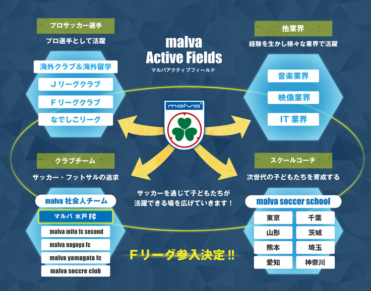 そして、今季から卒業生やスクールコーチを中心としたフットサルクラブ「malva水戸FC」で、念願だった「Fリーグ参入」を果たし、malvaらしい「ワクワクするプレーを魅せる」ための新たな挑戦を開始いたしました。