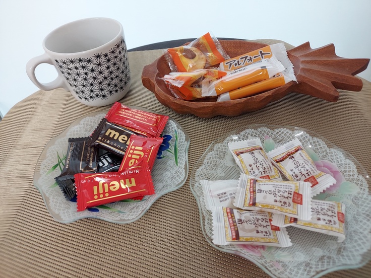 備品や、お椅子、茶菓子など常に準備しています(自費)