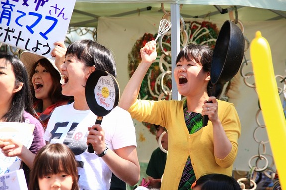 (代々木公園アースデイ2011での募金活動の様子 黄色い服が野田さん)