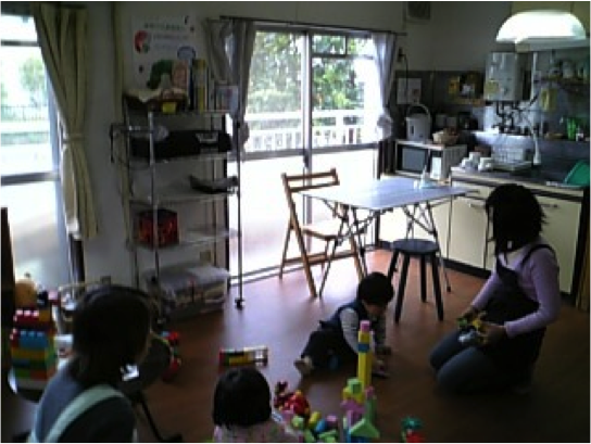 小さな子どもを連れたママたちが、自由に飲食や休憩、遊び場として利用でき、ママスタッフが友だちづくりを手伝ったり、子育ての悩みを聴いたり、一緒に子どもと遊んだりします。