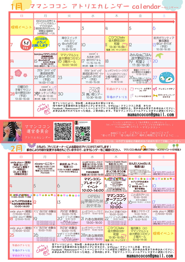 そんなママのために、毎月ママンココンでは、アトリエの予定を記載したカレンダーを発行しています。