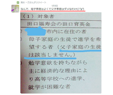 2010年頃から父子家庭への支援は全国父子家庭支援連絡会の国への働きかけにより母子家庭とほぼ同等になりましたが、まだまだ父子家庭への理解は不十分であり、自治体レベルでは「母子家庭限定」の取り組みが沢山存在している現状です。