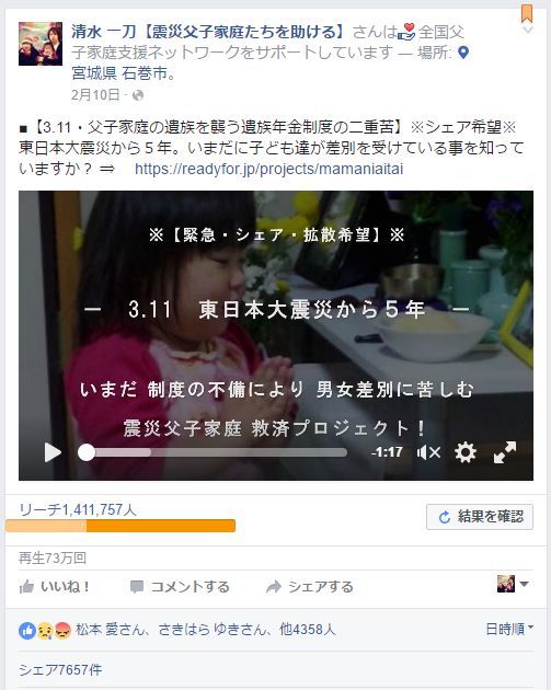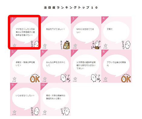 『ママを亡くした3万世帯の父子家庭親子に遺族年金を届けたい!』が 全国10,087,459 VOICE 中 " 注目度ランキング 1位 "で終了着地しました 。https://goo.gl/vP3m5a