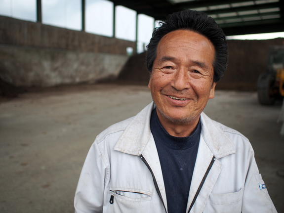 (野辺山高原二ツ山牧場 吉澤さん。安全な牛乳は安全な牧草作りから。40年のキャリアが酪農家と野菜農家を繋ぎます。COFFEE SOILには吉澤親子の技術とノウハウが活かされています)
