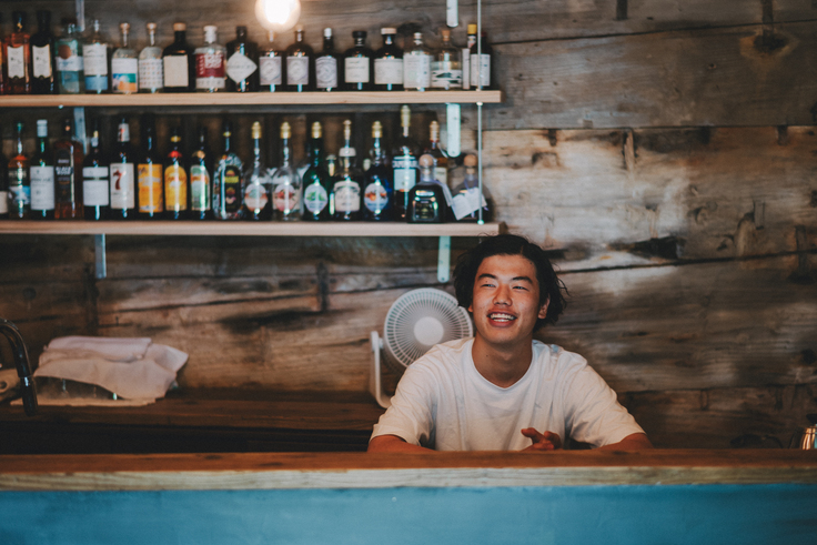 さらに、久比に長期滞在をするようになってからは、賽銭箱や椅子を独学で作りはじめ、自分の部屋をも自ら改修し、かと思えばバーの店長としてカクテルづくりに挑戦するという、どう紹介していいのかわからない人へと進化していきました。