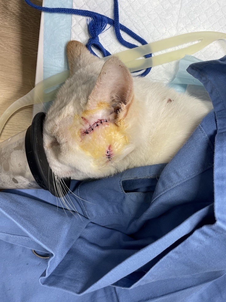 野良ちゃんのシーシーとゆう白い子は顔に怪我もしていて去勢手術時に縫合もしてもらいました