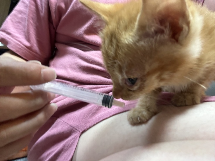 18日に保護した風邪ひきベビーは病院行ってお薬もらって投薬始めてます🐱