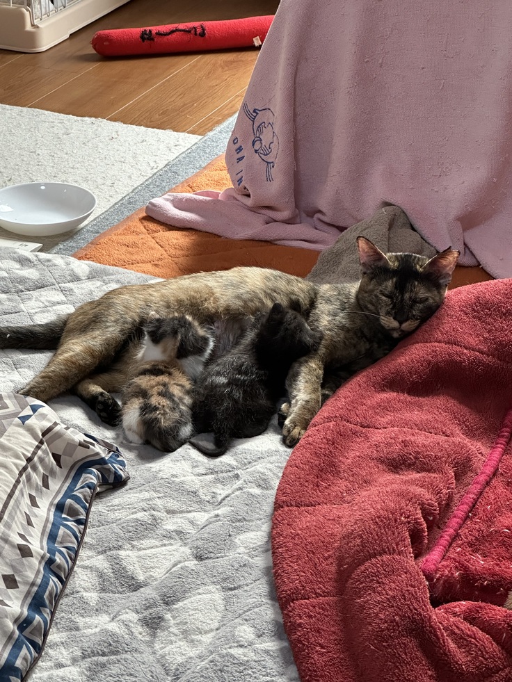 今回保護した乳飲子も、ぽんちゃんママが相手をしてくれます💕