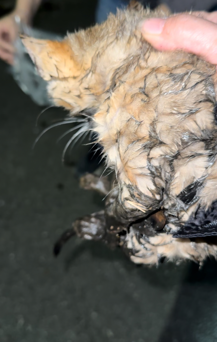 19時ころ、裏の公園の餌やりをしてくれているかおるさんからSOSの電話が来て急いで駆けつけると2ヶ月くらいの子猫が溝に落ちてしまっていて上がらない状態💦