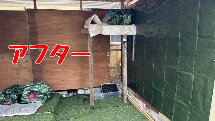 お外の子の倉庫を風除けの壁したり棚を作りました🏠
