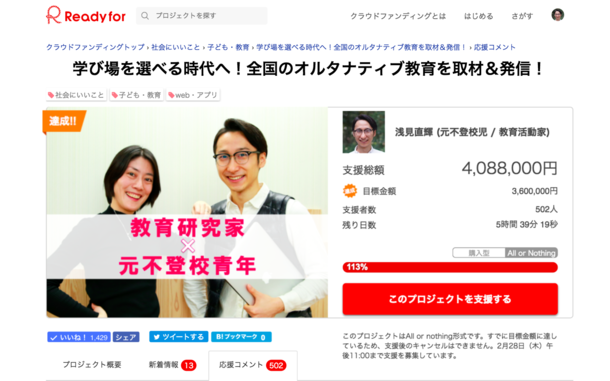 学びの選択肢を公教育に広めたい!エデュケーショナルファウンディング