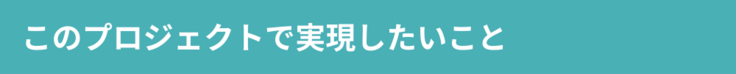 そのために、今回のプロジェクトを通して具体的に実現したいことが2つあります。