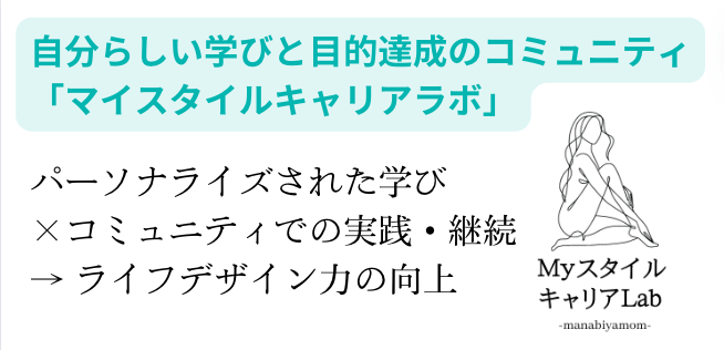 学び舎momの新しい取り組みであるMyスタイルキャリアLabは「理想の人生を思い描くだけでなく試行錯誤しながら行動し続けて実現させる力」をライフデザイン力とし、グループコーチングの手法を取り入れながら自分らしいキャリアを仲間と一緒に研究するオンラインコミュニティです。