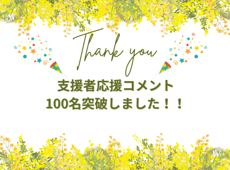 目標金額を突破してからも、皆さまのご支援が急速に集まり、ついに支援者応援コメントが100名を超えました!